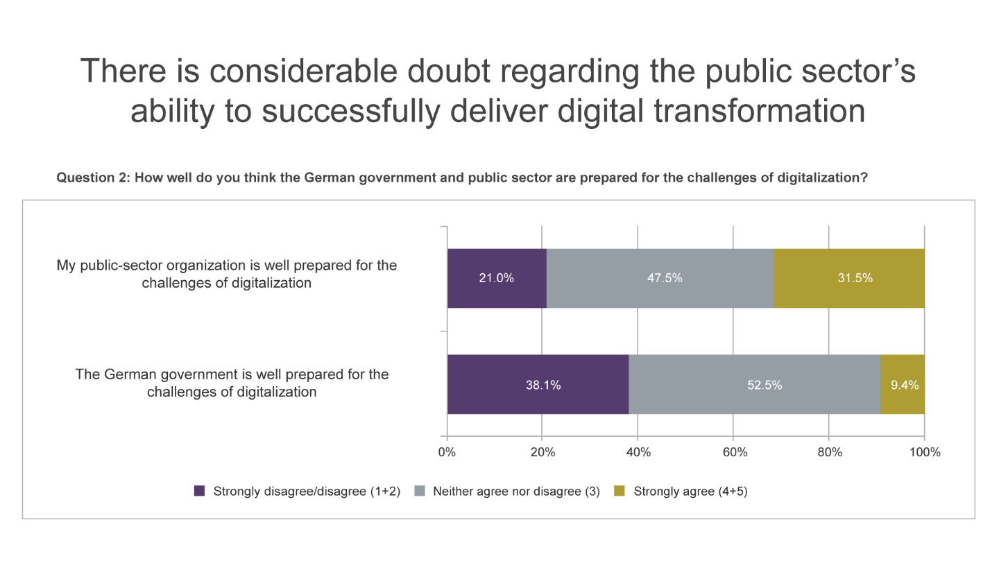 Despite the need for technical and organizational modernization, around 70 percent of the public-sector bodies surveyed state that they are unprepared for the challenges of the digital age.