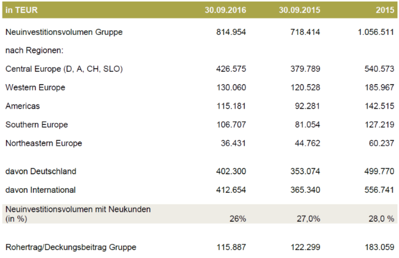 There was also brisk growth in the Americas, where the volume of lease originations climbed by 24.8 percent to €115 million (Q1–Q3 2015: €92 million). By contrast, gross profit for the business as a whole went down slightly, decreasing by 5.2 percent to just under €116 million (Q1–Q3 2015: €122 million).