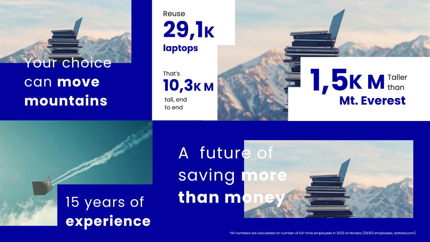 Around 50 million tonnes of electronic waste is generated each year. We reduce electronic waste by systematically refurbishing and remarketing old equipment. In 2023, we gave 95 percent of lease returns a second lifecycle. Working with our certified recycling partners, we returned the remaining 5 percent to the material cycle as far as technically possible. By the way, we can remarket any IT you already have in your company. The proceeds can be used to bring down the costs of your first project.