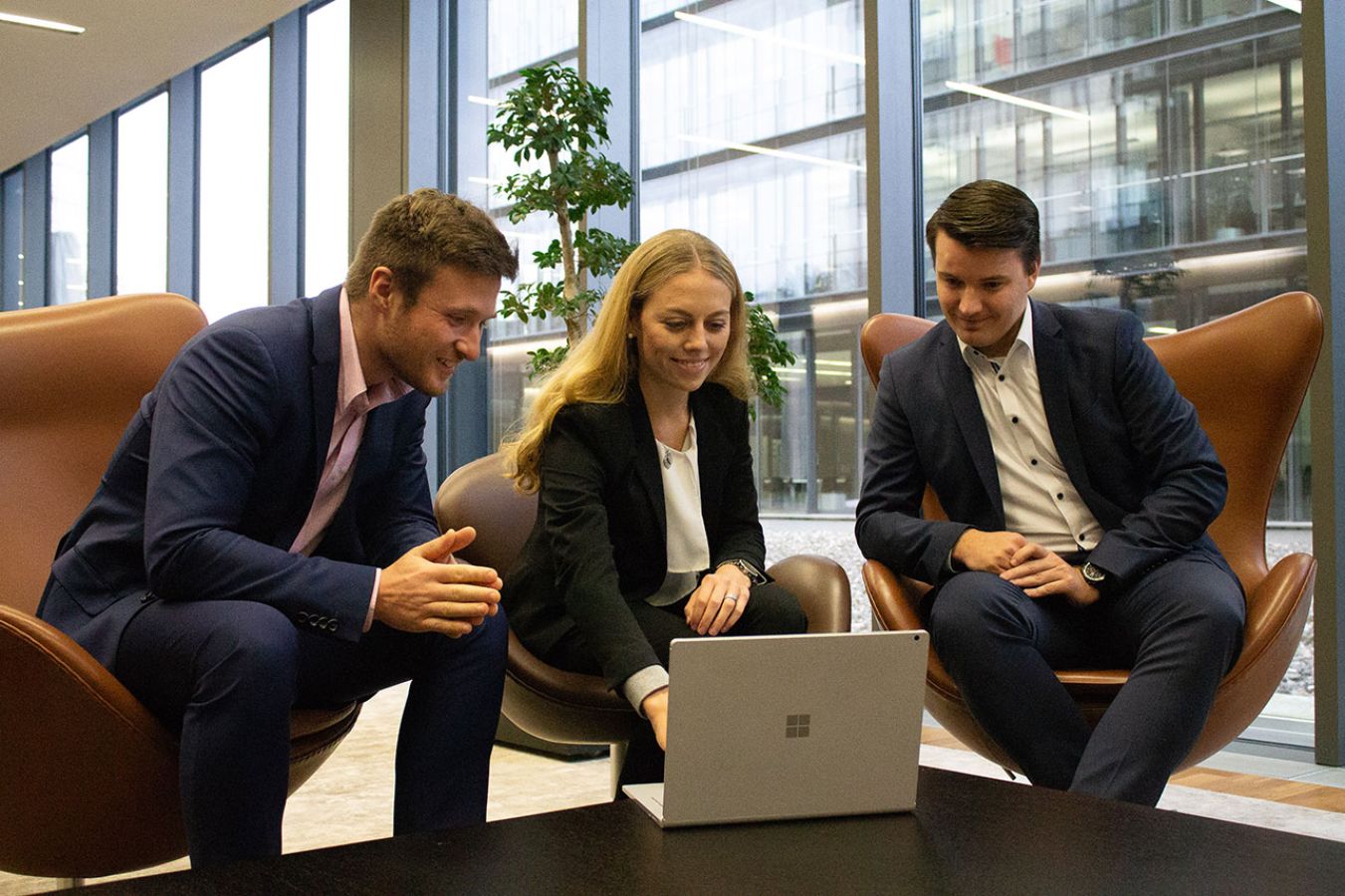 Our individual development is also supported by various trainings in the internal HR-Academy on topics such as presentation training, holding successful sales discussions and the mathematics of finance. The fact that all trainees come together regularly in trainings and the regular exchanges in telephone conferences also enables us to stay in close contact even across different sites and to share our experiences in sales.