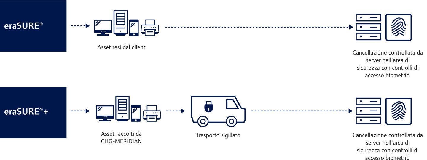 Per dati che richiedono un livello di protezione molto elevato, consigliamo eraSURE®+. Il processo inizia con la raccolta sicura dei beni attraverso