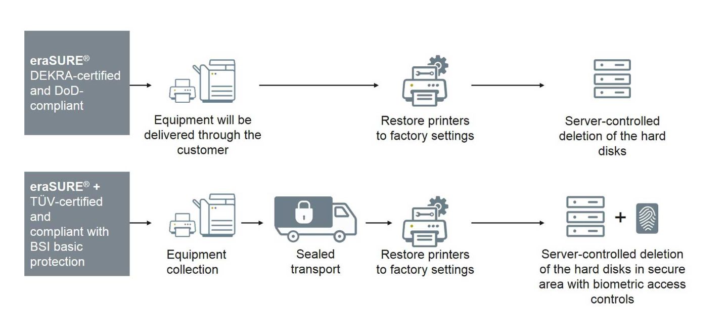 The data is split into protection classes according to the customer’s required level of protection, and the appropriate erasure process is selected. Standard eraSURE® is suitable for normal protection purposes (DEKRA-certified and DoD-compliant).